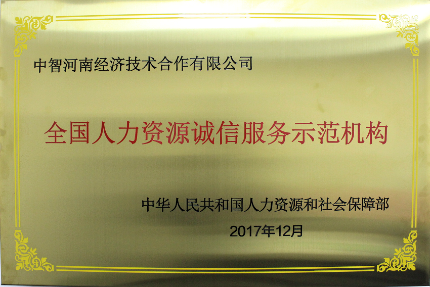 3.中智河南公司榮獲“全國(guó)人力資源誠(chéng)信服務(wù)示范機(jī)構(gòu)”稱號(hào)