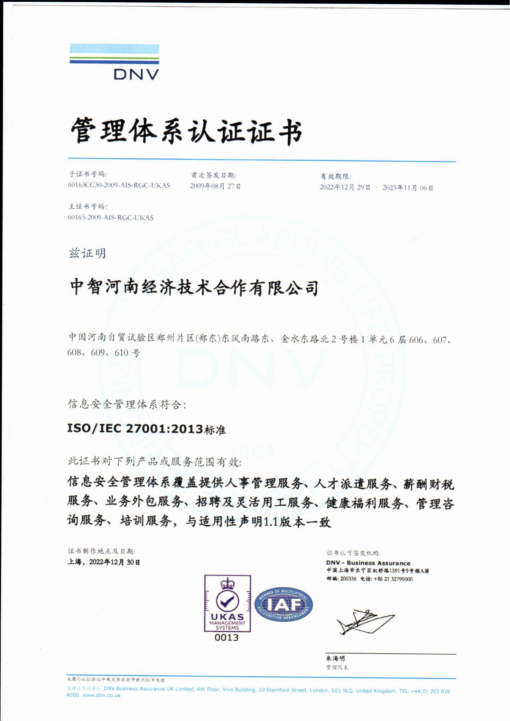 6.中智河南公司榮獲“各項(xiàng)管理體系認(rèn)證證書”